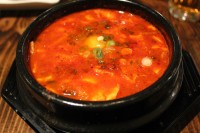 メニューは、韓国料理の定番アイテムの餃子、パジョン、韓国フライドチキン、スンドゥブ、ビビンバ、チャプチェに焼き肉(既にキッチンで調理されたもの)とすべて揃っている。人気のフライドチキンは約15分かけてかりかりに揚げるので少し時間がかかるため、早めにオーダーするのがおすすめ。