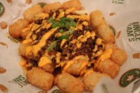 サイドメニューの「Loaded Fries」は、揚げたイモに、チーズと四川料理で使われるチリソースで炒めた豚のひき肉とねぎがたっぷりのっていて、かなりのボリューム感だ。