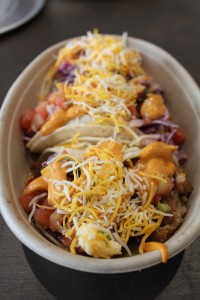 タコス(3種/$10)の他にも、同じ具材でブリトーやライスボウル($8.50−$9.25)、ケサディヤ($7.00-$9.25)にすることもできる。またサイドメニューのジャパニーズ・ナチョ・トッツは、カリカリに揚がったミニハッシュポテトに、お好み焼きソース、マヨネーズ、かつお節がのっており、思わずたこ焼きを食べている気分に。
