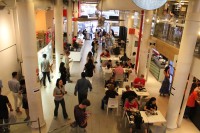 自分の好きなお店で料理をオーダーし、会計時に呼び出し用の受信機受け取り、料理ができるのを待つ。受信機が鳴ったらお店に料理を取りに行き、好きな席に座って食べるというシステム。テイクアウトが出来るものも多いので、店内で食べなくてもよいし、その場で食べきれなかった分を持ち帰えることもできる。